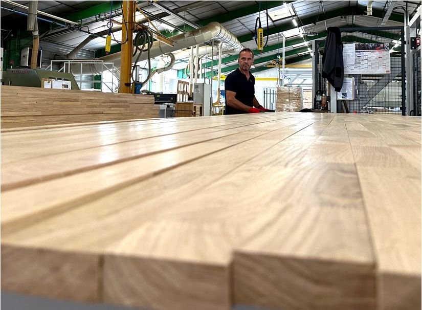 Le Label Horizon distingue les produits Levieux fabriqués avec des carrelets en chêne lamellés-collés Ducerf, certifiés PEFC et CTB-LCA.